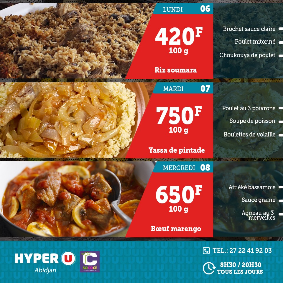 Menu de la semaine #2 Jeu/Ven/Sam : Hyper U Abidjan