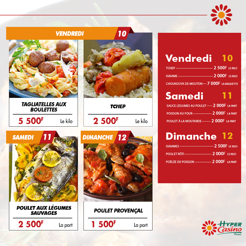 Menu de la semaine #2 Ven/Sam/Dim : Casino Côte d'Ivoire (Prima)